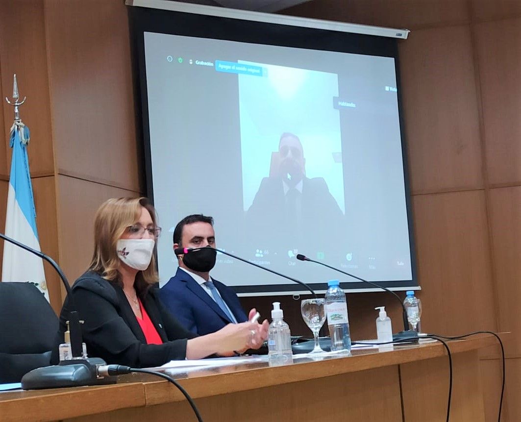 La Dra. Adriana García Nieto junto con el Dr. Federico Ozollo, y el Dr. Mario Parisí presente a través de la plataforma Zoom.
