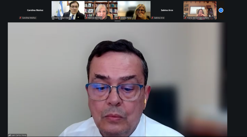 El Dr. Olivares Yapur, en su carácter de moderador, destacó la importancia del programa de formación y expresó su agradecimiento a integrantes de la red de escuelas judiciales de Iberoamérica y de la República Argentina, a todos los ministros de Corte y a los señores jueces y juezas de la República Argentina, de Latinoamérica y de Iberoamérica y explicó la metodología, con el objetivo de fortalecer competencias jurídicas y técnicas profesionales.