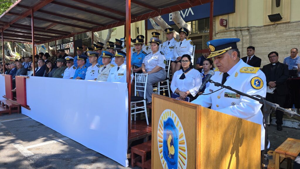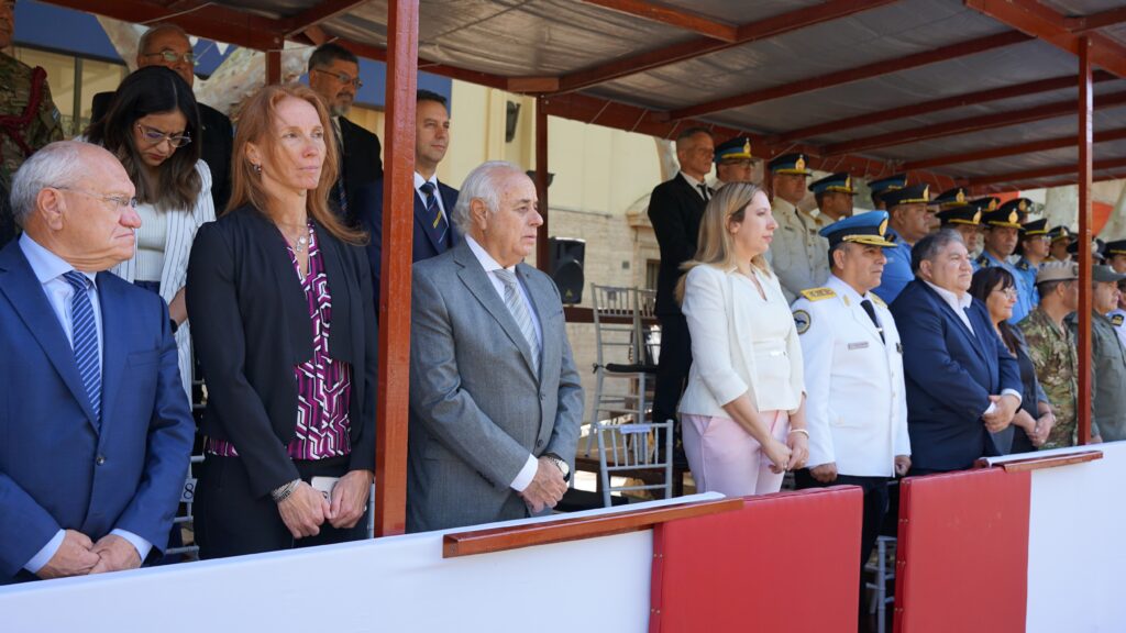También participaron de la ceremonia, en representación del Poder Ejecutivo, la Ministra de Gobierno, Dra. Laura Palma; jefes de las fuerzas de seguridad locales y nacionales, autoridades del fuero Federal, diputados provinciales y Veteranos de Malvinas, entre otras instituciones y autoridades.