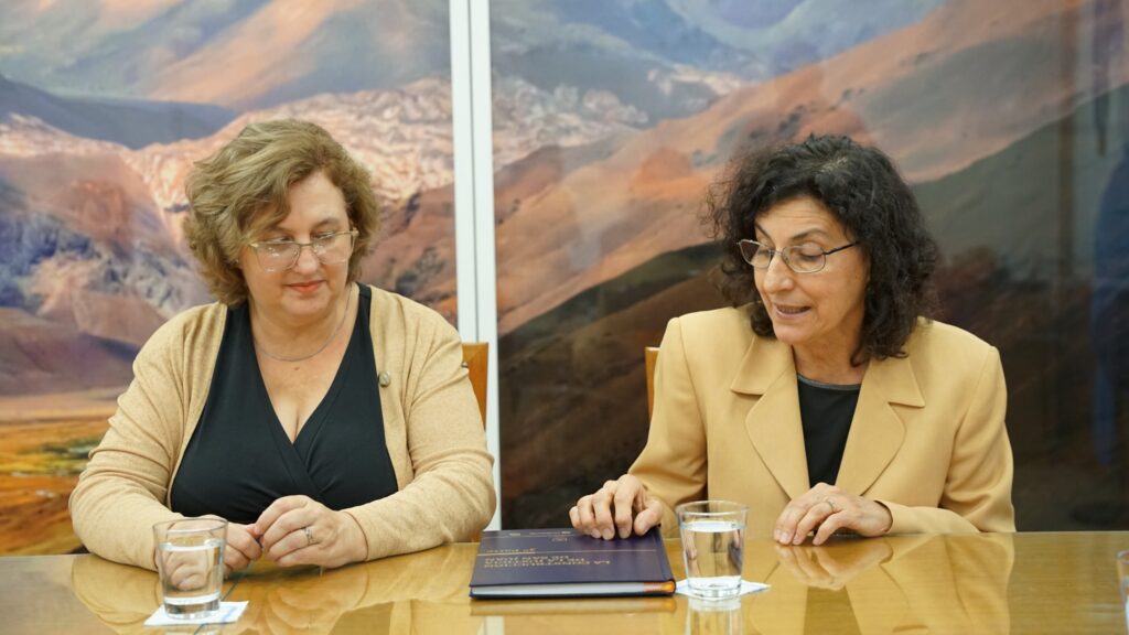 El acto se llevó a cabo el 26 de febrero en la Sala de Situación y Acuerdos del Poder Judicial, con la presencia del Secretario de Planificación, Evaluación y Coordinación Institucional de la UNSJ, CP Lucas Molina Rojo; la Directora del Instituto de Historia Regional y Argentina Héctor Domingo Arias, Dra. Silvana Frau; el Subdirector del Instituto de Historia Argentina y Regional de FFAA Carlos Moreno; la investigadora, Magíster Alejandra Ferrari, y los Prosecretarios Letrados de la vocalía del Dr. De Sanctis, Dra. Laura Petronio y el Dr. Edgardo Navarro.