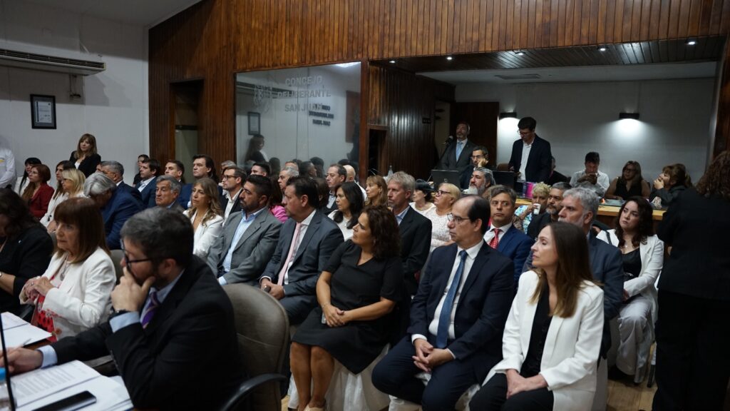 La Corte de Justicia, a través de su Presidente, Dr. Daniel Olivares Yapur, participó de la Apertura de Sesiones Ordinarias del Concejo Deliberante de la Ciudad de San Juan para el periodo 2026, el cual contó con la presencia del Vicegobernador de la Provincia, Dr. Fabián Martín, a cargo del Ejecutivo Provincial. En este marco, la Intendente de la Ciudad de San Juan, Dra. Susana Laciar, brindó su mensaje anual con las acciones realizadas en materia de obra pública y servicios en Capital y la proyección para este 2026.