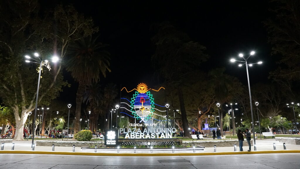 La renovación integral de la Plaza Aberastain se centró en modernizar su infraestructura manteniendo su esencia histórica y patrimonial. Las obras incluyeron la sustitución total de solados por materiales de alta resistencia, una readecuación eléctrica completa con tecnología LED y la eliminación de barreras arquitectónicas para garantizar la accesibilidad universal. Además de la restauración de elementos simbólicos como la fuente central, el sector del Escudo y los muros de piedra, se trabajó en las áreas recreativas, el sector de juegos y la creación de espacios de permanencia. Incorporaron WiFi gratuito y mobiliario renovado en la zona de kioscos. Finalmente, la puesta en valor se completó con un sistema de riego optimizado y la intervención de parquización y plantación de nuevas especies arbóreas.