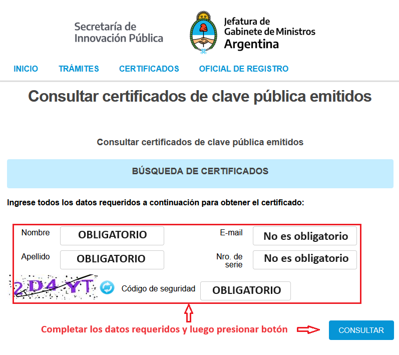 Al realizar la consulta, sólo es necesario completar los siguientes datos: