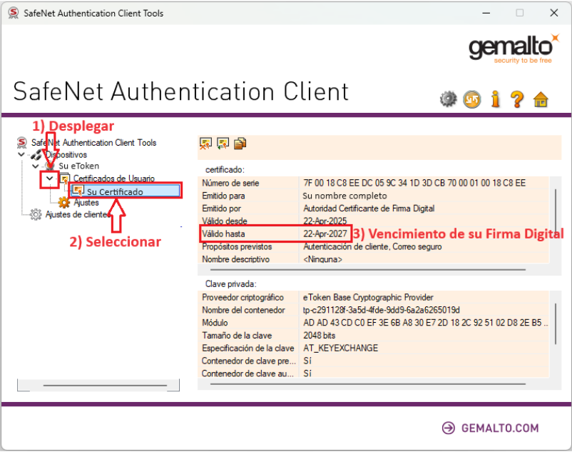 Si su dispositivo TOKEN es un eToken SafeNet 5110, también podrá consultar la validez de su Certificado de Firam Digital siguiendo los pasos a continuación: