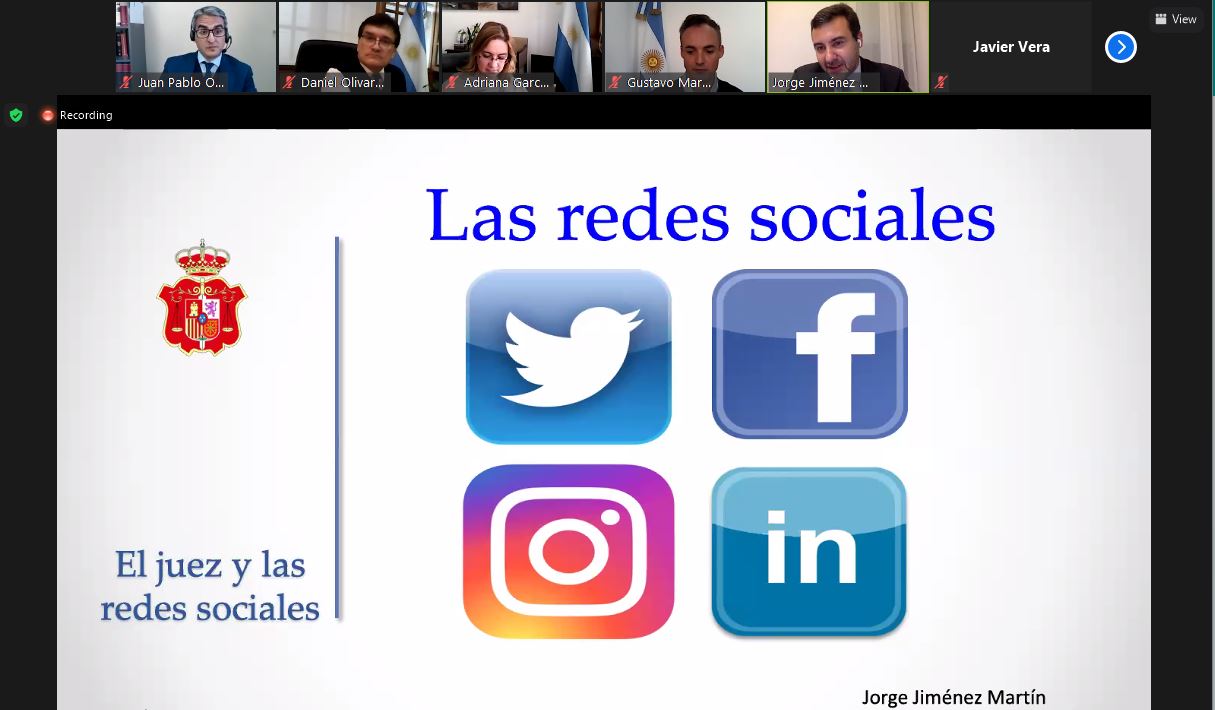 En una exposición dinámica y fundada, con ejemplos prácticos tomados de la realidad, el Dr. Jiménez Martín mostró el uso de redes sociales de la magistratura y el impacto en la opinión pública; habló de los límites entre lo personal y lo profesional; y de algunas medidas y sugerencias implementadas en España, Francia y Estados Unidos sobre el uso de las redes sociales en la magistratura.