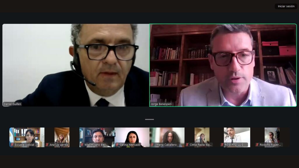 El Dr. Benesperi compartió además su experiencia en causas institucionales de alta complejidad, destacando la relevancia de la planificación estratégica y la ética profesional en el ejercicio de la defensa.