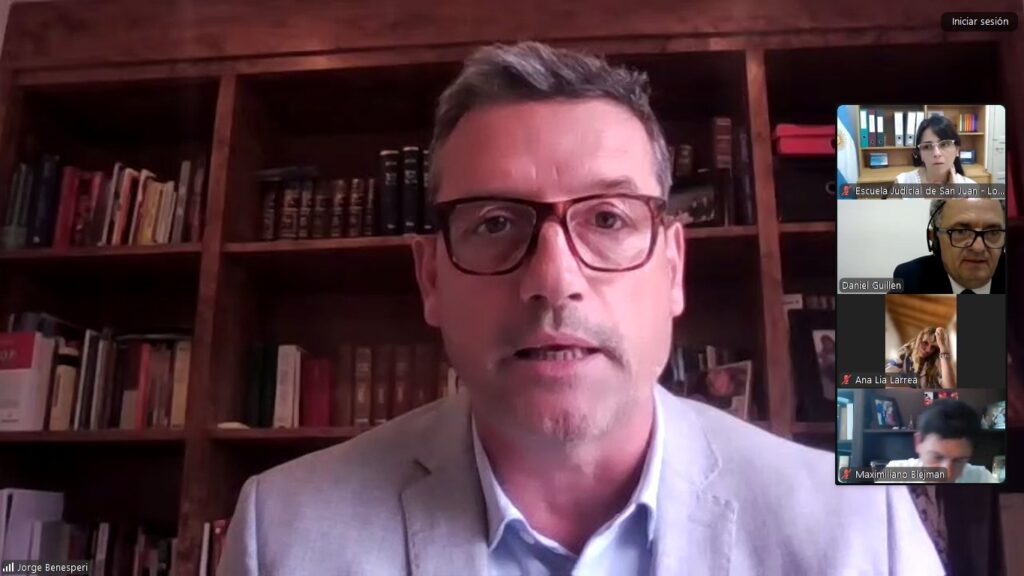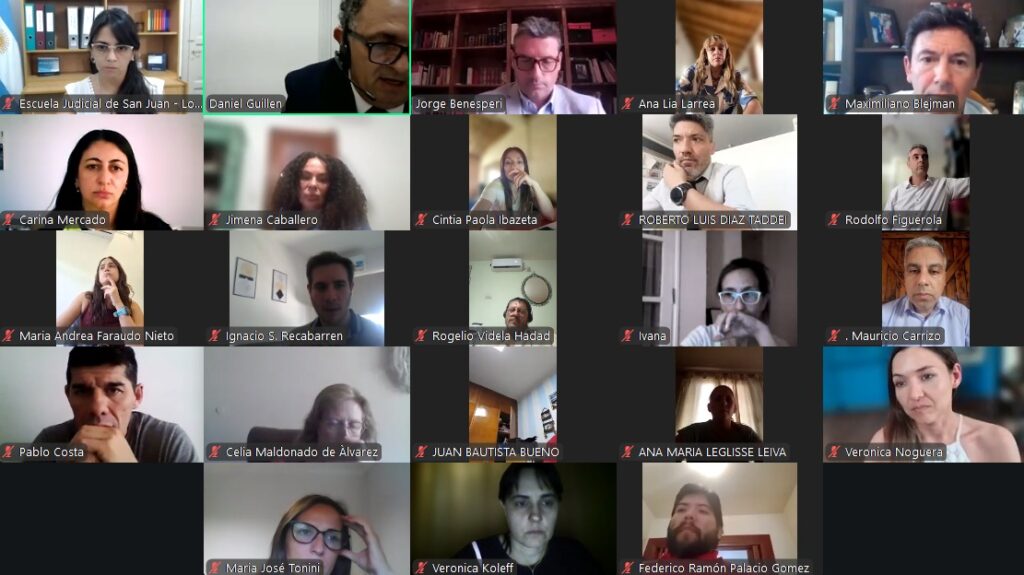 Se desarrolló de manera virtual el quinto encuentro del Conversatorio sobre “Juicio por Jurados Populares en San Juan”, ciclo destinado a profundizar los pilares fundamentales del sistema de enjuiciamiento penal. La actividad reunió a magistrados y magistradas, integrantes del Ministerio Público Fiscal y de la Defensa, abogados litigantes, auxiliares judiciales y estudiantes avanzados en derecho.